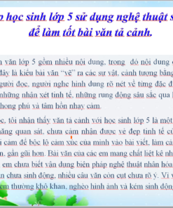 Phân môn Tập làm văn lớp 5 gồm nhiều nội dung, trong đó nội dung chiếm thời lượng nhiều nhất là văn tả cảnh – đây là kiểu bài văn “vẽ” ra các sự vật, cảnh tượng bằng ngôn ngữ một cách cụ thể sinh động, giúp người đọc, người nghe hình dung rõ nét về từng đặc điểm, bộ phận của cảnh. Đó là sự kết tinh của những nhận xét tinh tế, những rung động sâu sắc qua khả năng quan sát nhạy bén, óc tưởng tượng phong phú và tâm hồn nhạy cảm.