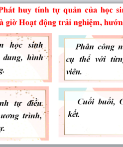 – Thứ nhất: Tạo điều kiện cho học sinh phát triển năng lực tự chủ, tự học: Tự ý thức, tự quản lý bản thân mình, tự quản tổ mình, lớp mình. Từ đó nhân cách học sinh được xác lập, được thử thách và hoàn thiện dần qua công việc, qua môn học, bài học.