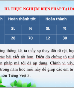 Với mong muốn học sinh có thể viết tốt đoạn văn, tôi đã mạnh dạn đưa ra “Giải pháp giúp học sinh lớp 3 phát triển năng lực viết đoạn văn – Theo chương trình GDPT 2018” trước mắt là giúp nâng cao chất lượng dạy và học của lớp mình. Sau là có thể cùng trao đổi kinh nghiệm giảng dạy với đồng nghiệp nhằm nâng cao chất lượng dạy và học cho học sinh khối lớp 3.