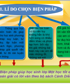 - 1 POWERPOINT BIỆN PHÁP “Rèn kĩ năng giải toán có lời văn cho học sinh lớp 1 theo bộ sách Cánh diều”. được soạn theo file ppt gồm 18 trang.