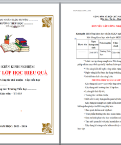 WORD SÁNG KIẾN KINH NGHIỆM QUẢN LÝ LỚP TIỂU HỌC HIỆU QUẢ NĂM 2023-2024