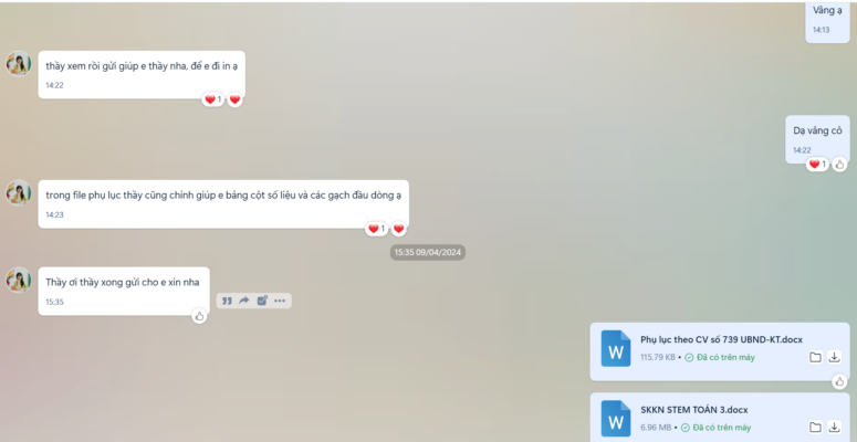 TEAM SANGKIENMOIDưới đây là một số hội thoại, chia sẻ cùng giáo viên tại sangkienmoi. Thầy cô tham khảo thêm để có sự tin tưởng vào đội ngũ của team.