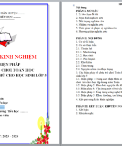 WORD “Một số biện pháp tổ chức trò chơi toán học nhằm gây hứng thú cho học sinh lớp 5” NĂM 2023-2024 * KHÔNG CÓ TRÊN MẠNG được soạn theo file word gồm 4 file với file in, mục lục, bìa, đơn xác nhận. File chính gồm 16 trang.
