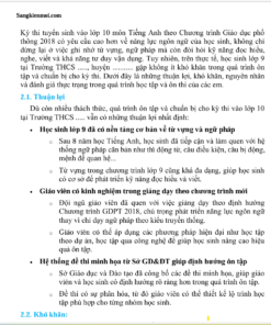1.1. Kỳ thi tuyển sinh vào lớp 10 môn Tiếng Anh theo Chương trình GDPT 2018 yêu cầu học sinh không chỉ nắm vững ngữ pháp, từ vựng mà còn có kỹ năng đọc hiểu, skkn chủ nhiệm lớp 3 viết, nghe hiệu quả. 1