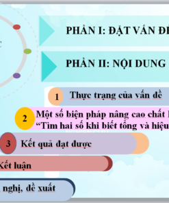 - 1 WORD + POWERPOINT BÁO CÁO ““BIỆN PHÁP NÂNG CAO CHẤT LƯỢNG GIẢI TOÁN TÌM HAI SỐ KHI BIẾT TỔNG VÀ HIỆU CỦA HAI SỐ ĐÓ ” SÁCH KẾT NỐI TRI THỨC NĂM 2024-2025 * KHÔNG CÓ TRÊN MẠNGđược soạn theo file word gồm 10 trang, File ppt gồm 17 trang.