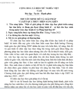 Thuyết minh mô tả giải pháp và kết quả thực hiện sáng kiến