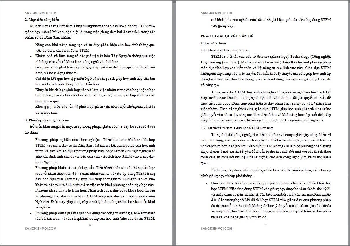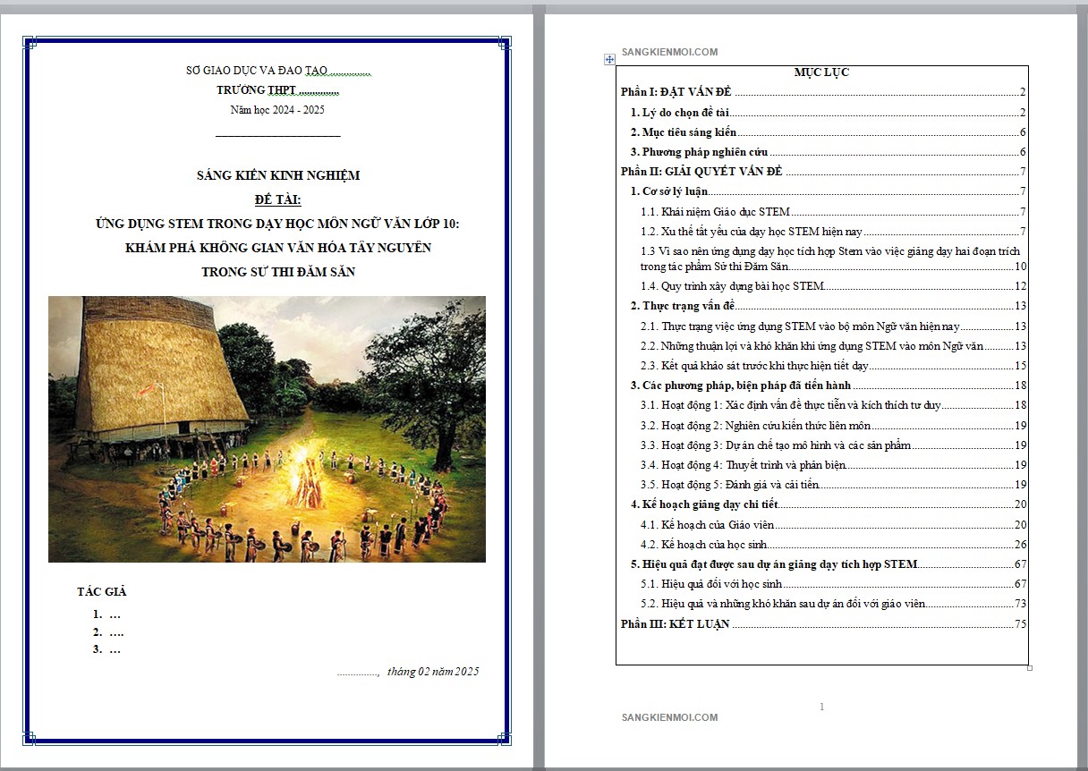 WORD SÁNG KIẾN KINH NGHIỆM ỨNG DỤNG STEM TRONG DẠY HỌC MÔN NGỮ VĂN LỚP 10: KHÁM PHÁ KHÔNG GIAN VĂN HÓA TÂY NGUYÊN TRONG SỬ THI ĐĂM SĂN NĂM 2025 được soạn theo file word gồm 83 trang.